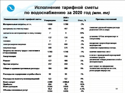 - Подача воды по магистральным трубопроводам (техническая вода) - 53,50 тенге за м3 сНДС,